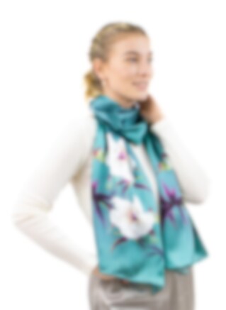 100% mullbärssiden i blank satinväv med konstmotiv.