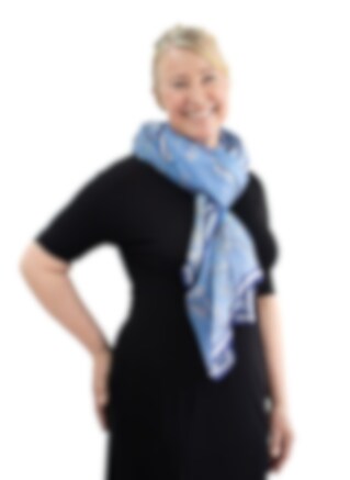 Lätt och elegant sjal i 100% mullbärssilke med fin chiffongväv som ger ett mjukt, halvtransparent fall. Den generösa storleken (100x170 cm) gör den mångsidig, perfekt som både halsduk, sjal eller axelplagg.