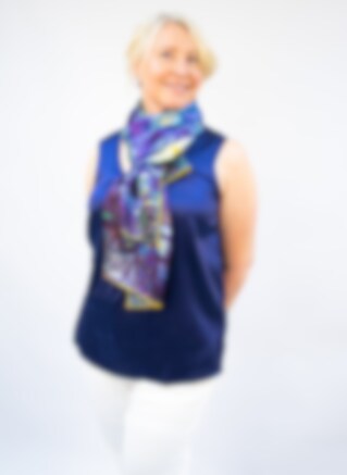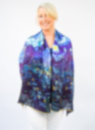 100% mullbärssiden i blank satinväv med konstmotiv.