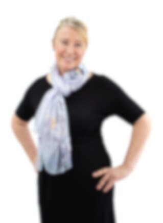 Luftig sidensjal i mönstret Drömsk med charmigt fågelmotiv. Tillverkad i 100% mullbärssiden i en lätt och transparent chiffongväv. Storlek: 100x170 cm.