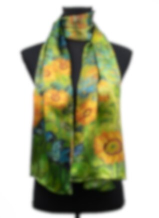 100% mullbärssiden i blank satinväv med konstmotiv.