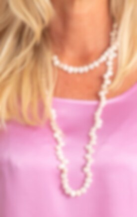 Äkta sötvattenspärlor med underbar lyster av naturliga äkta pärlor, miljövänligt producerade och helt ofärgade i pärlans naturliga färg. Kvalitetsknut mellan varje pärla precis som majoriteten av SidenSelmas pärlprodukter.