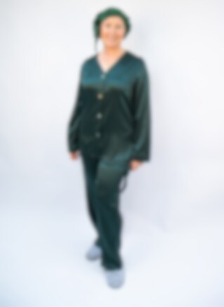 Sidenpyjamas Dam, Satin, Mörkgrön