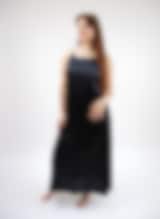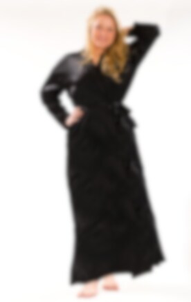 Passar vårt långa nattlinne i svart sidensatin. Infällda fickor, bred sjalkrage, bälte.