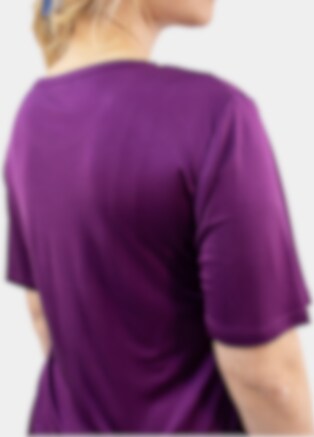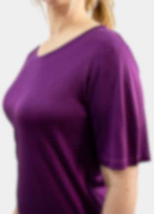 Underbart sidennattlinne i 100% silketrikå. Mjukt, följsamt och bekvämt med rundringad hals. Medellångt nattlinne som sträcker sig över knäna. Vacker lila nyans.