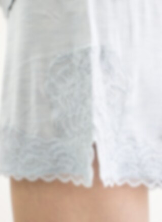 Dessa mjuka shorts i spunnet silke med eleganta spetsdetaljer är både vackert och bekvämt. Shortsen är i 100% mullbärssiden och är spunnetsilke. Spunnetsilke är inte lika glansig men är istället otroligt mjuk och har alla andra bra egenskaper som siden har. Tack vare sidenets naturligt temperaturreglerande egenskaper är linnet både svalt och behagligt mot huden – perfekt för varma nätter. Kombinera gärna med de matchande sidenshortsen för en komplett och lyxig pyjamas. Alla spetsdetaljer är fodrade och skaver inte mot huden.