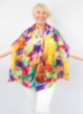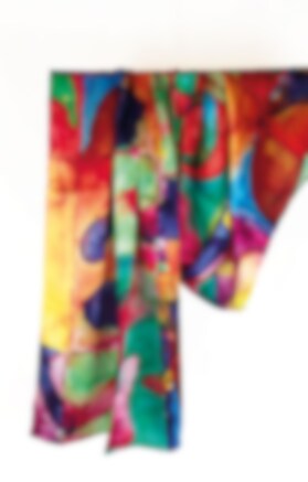 Sidensjal med konsttryck i makalös färgsättning och kvalité. Stora & praktiska avlånga sjalmått på 170x50cm. Konsttryck av akvarellmålning i färgsprakande motiv. Uppskattad present till alla färgstarka personligheter & konstälskare. Passar bra till alla enfärgade kläder eftersom sjalen plockar upp nyanser.