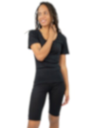 Nu har vi lyckats ännu en gång och arbetat fram ett fantastiskt material i en blandning av naturmaterialen siden och ull. Upptäck nya naturmaterial tillsammans med oss på sidenvägen. De korta byxorna har följsam passform och slutar strax ovan knäna beroende på bärarens längd. Materialet är mjukt ribbstickat i likhet med våra ribbade kvalitéer i 100% siden. Dessa dambenkläder/mamelucker är något varmare tack vare ullens egenskaper och har lite kortare fibrer vilket gör byxorna inte är fullt så lena som våra rena sidenkvalitéer. Materialet har mycket bra andningsförmåga och upplevs som väldigt lätt och skönt mot kroppen.