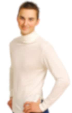 Otroligt behaglig naturvit polo i härlig trikå av 100% siden. Unisex modell som passar både dam & herr. Mjuk & klassiskt draperande krage. Den äkta sidenkvalitén gör att du aldrig blir för varm eller kall. Perfekt både till kavaj eller som underställströja i skidbacken! Snygg, praktisk & underbart skön.