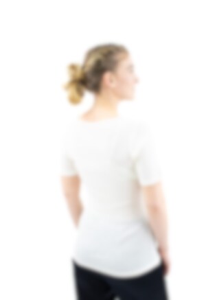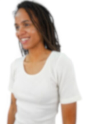 Kortärmad undertröja i ullsiden. Mjukt ribbat material av naturligt mullbärssilke & ull.