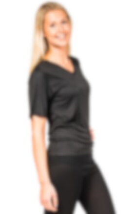 Praktisk t-shirt i kraftig silketrikå med klassisk v-ringning. Bra unisexmodell med rakt snitt.